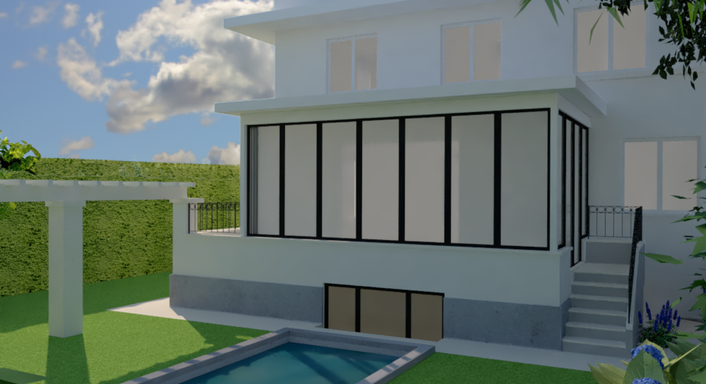 Modélisation 3D complète pour l'Atelier d'architecture Frédéric de Bonhomme. Construction d'une annexe.