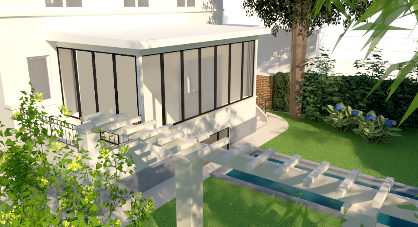 Modélisation 3D complète pour l'Atelier d'architecture Frédéric de Bonhomme. Construction d'une annexe.