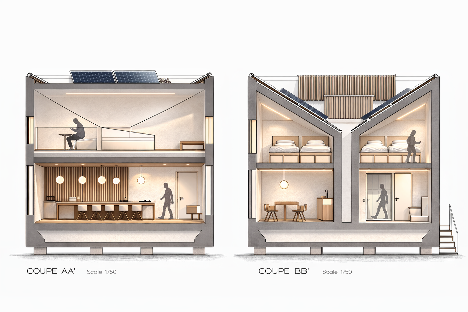 . Les systèmes de panneaux solaires thermiques concentrent l'énergie du soleil dans des systèmes de stockage thermique. Ce stockage thermique est utilisé pour réchauffer l'eau du puits pour les douches et le chauffage des murs.